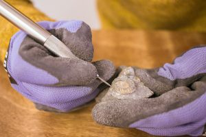 En Fossil Lab realizamos la preparación, limpieza, consolidación y embalaje de fósiles en laboratorio, aplicando técnicas especializadas que permiten la correcta exposición y preservación de las piezas paleontológicas. Nuestro trabajo se basa en el uso de insumos de grado conservativo y herramientas manuales, eléctricas y neumáticas, seleccionadas según el tipo de fósil, su matriz y estado de preservación.